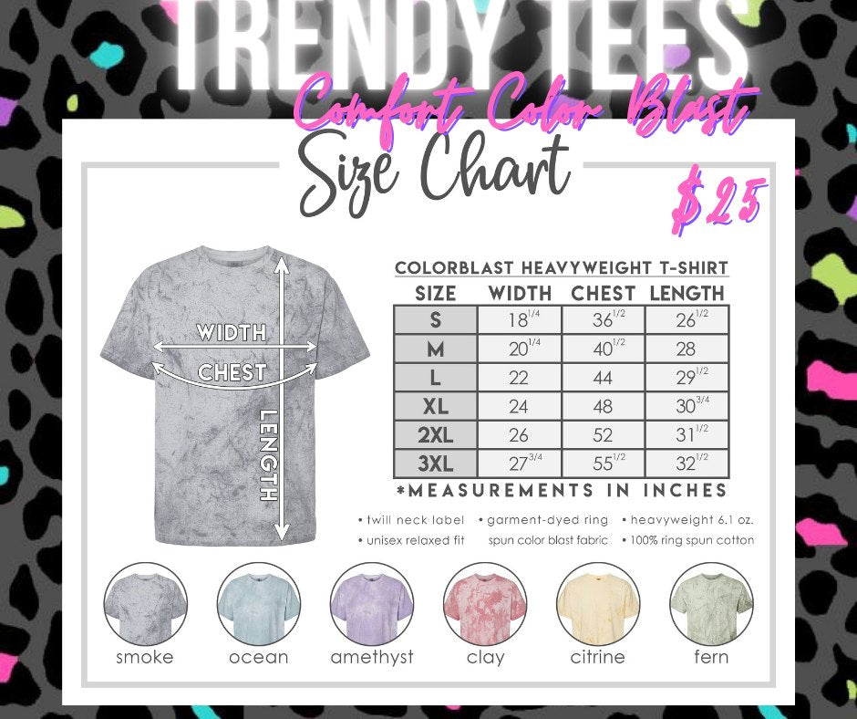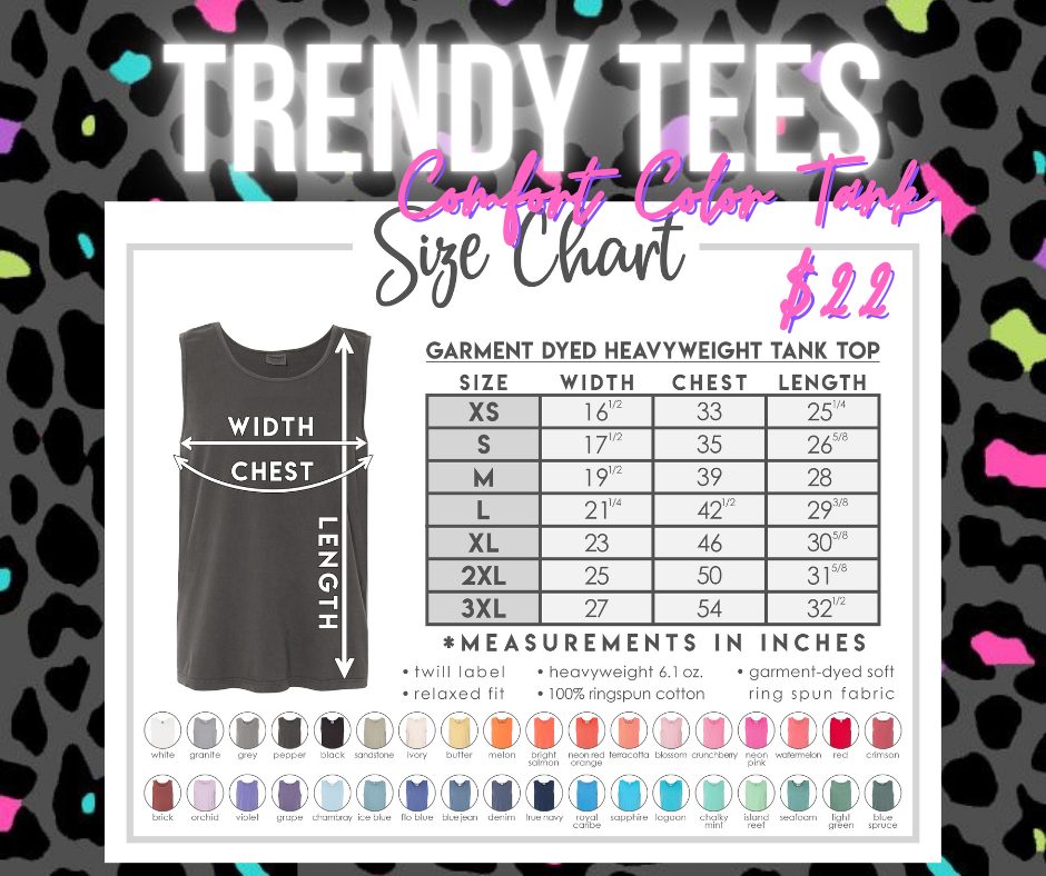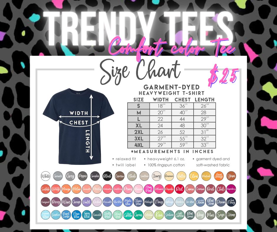 Utilize the chat in the bottom right corner of this page or send an email to trendyteesbyleslie@gmail.com should you have any questions!