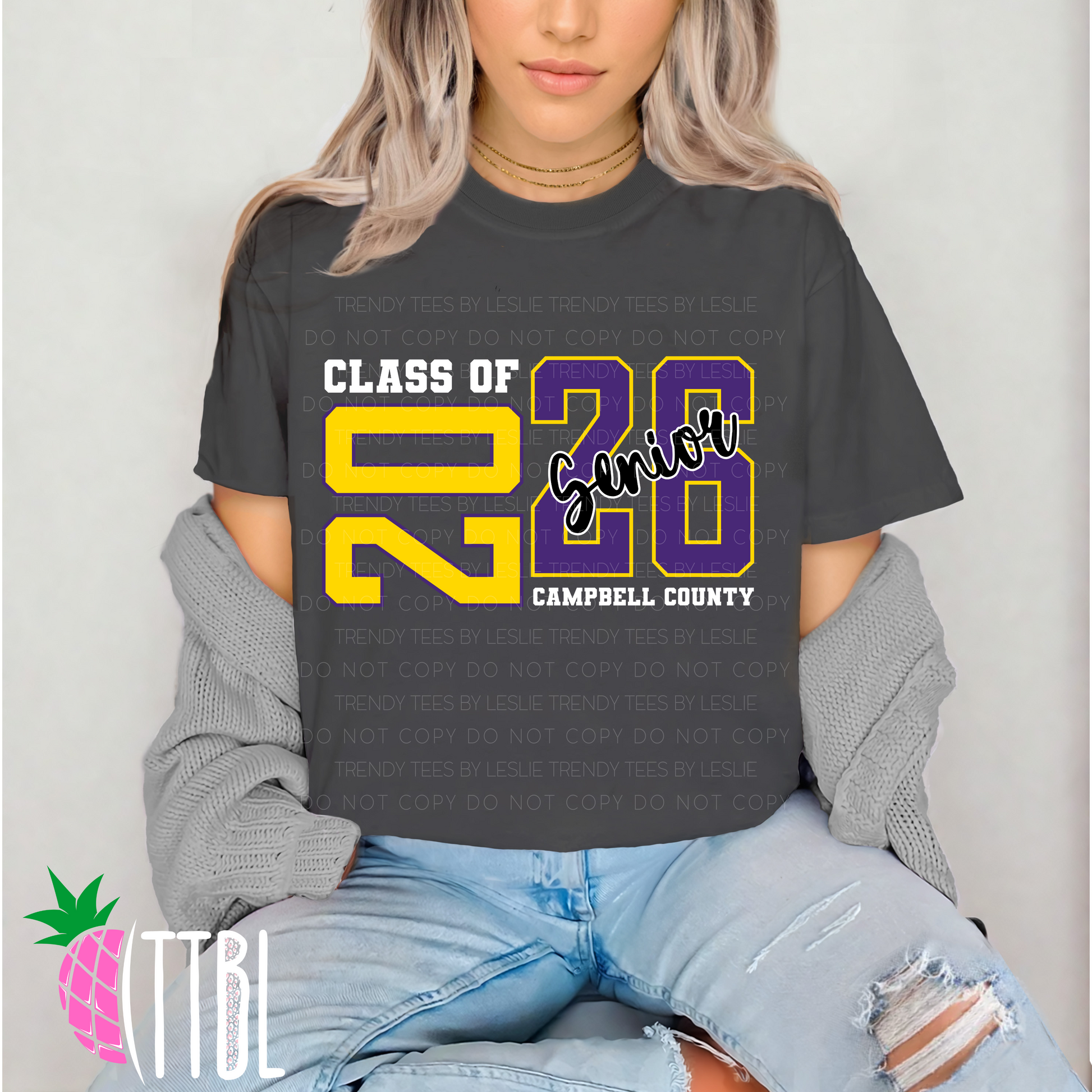 Please note darker colors will have White Print for "Class of" and "Campbell county"